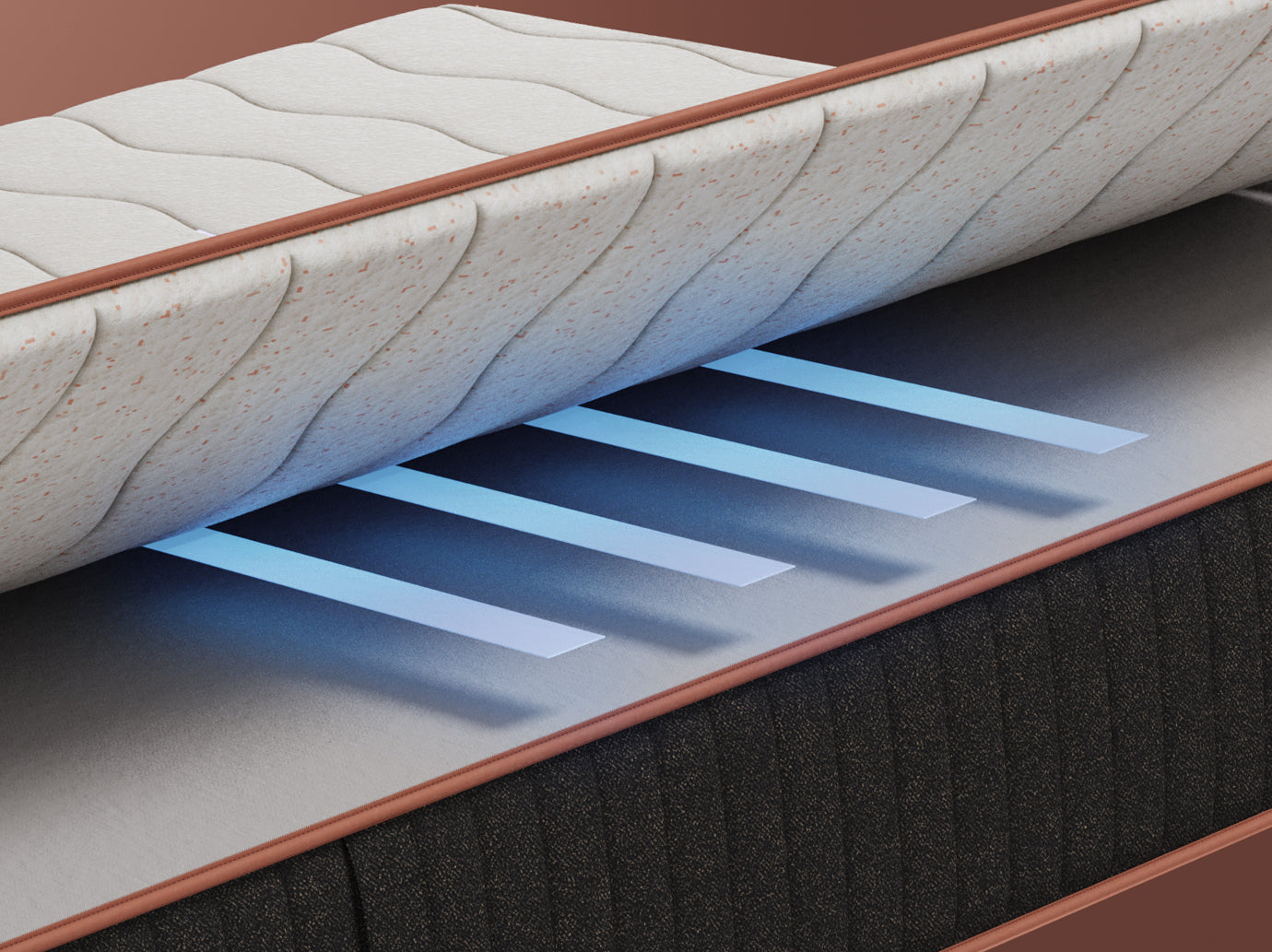 コッパー(銅)配合のクラウドセル®と竹炭配合のウレタンフォームにより、かつてない衛生的な睡眠環境を実現しました。 両素材の優れた抗菌作用が、カビや細菌の繁殖を抑制。 さらに、竹炭が湿気を吸収し、コッパーが余分な熱を逃がすことで、マットレス内を常に爽やかで快適な温度に保ちます。 この組み合わせが、よりすこやかな眠りを支えます。