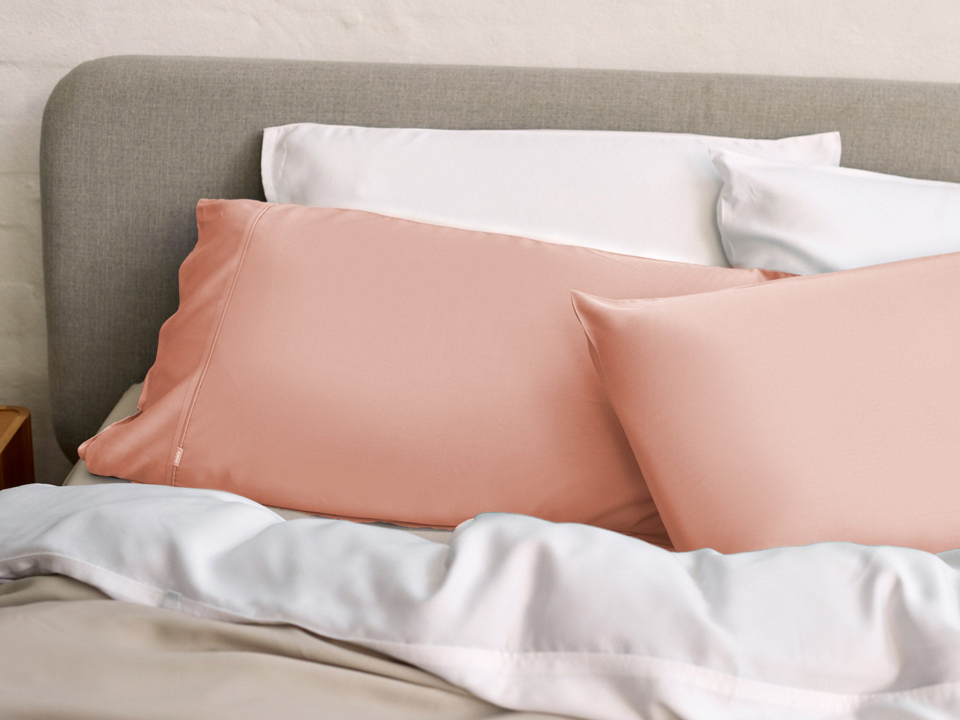 テンセル™リヨセル繊維でできた、シルクのような滑らかさと肌触りの良さが特徴のボックスシーツ。