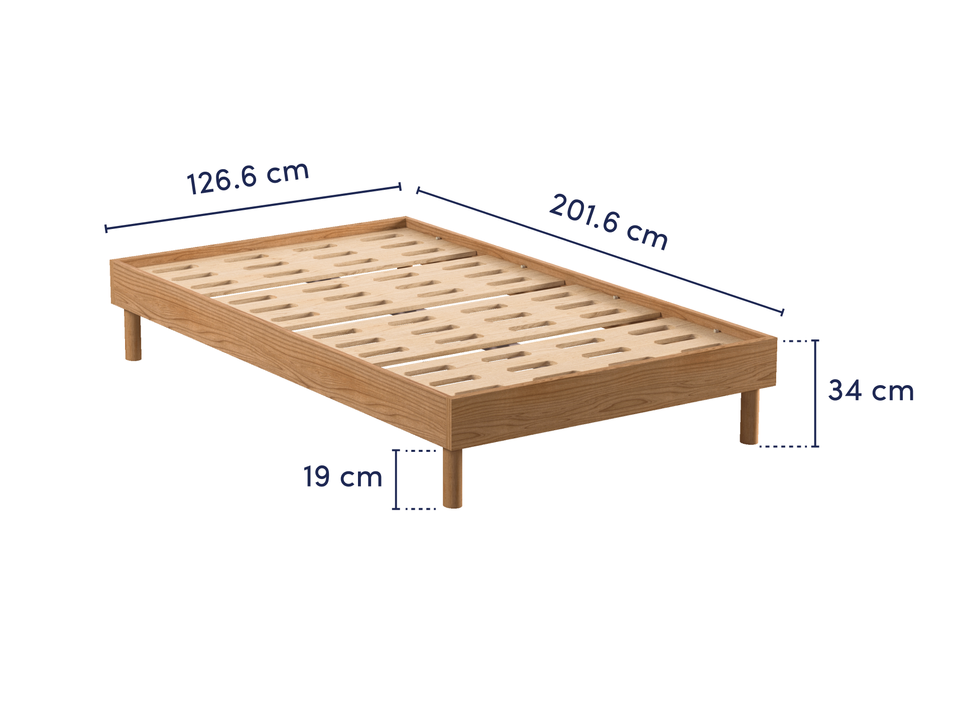 ベッドフレームの脚は高さが19cmあり、ベッド下は引き出しや収納ボックスを入れるスペースとしても有効活用いただけます。お掃除ロボットも無理なく通ることができ、お掃除も簡単です。